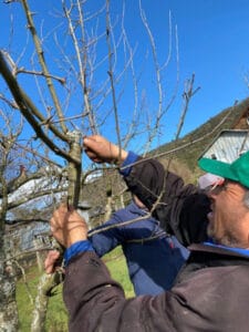 En los predios de la pequeña agricultura, una de las tareas de invierno es atender a los frutales, asi como a la masa forestal presente